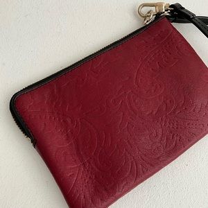 Fossil lucky brand coach burgundy wine oxblood stamped leather paisley design Madewell Anthropologie Nordstrom