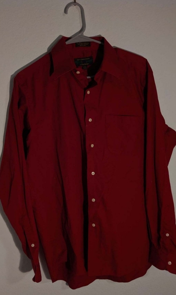 Long sleeved and red, attaches and detaches with buttons down the torso. Has a color for looking professional and tucking ties.