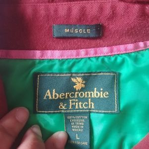 Abercrombie & Fitch faded long sleeve button up. Has some trendy wear on pocket and collar see pictured. Shirt is red with green & pink accent colors.