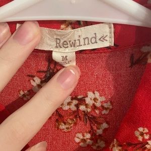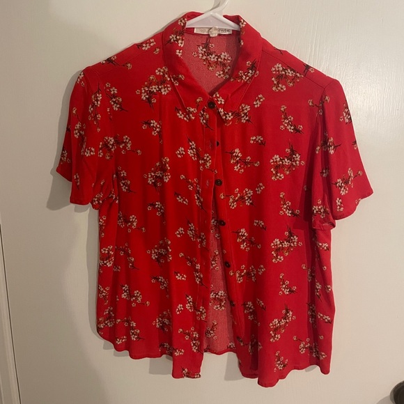 Super cute red button up tee with flowers on it. can be tied at the front for a cropped look also!