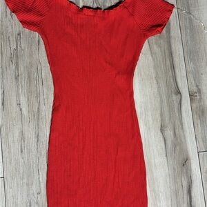 Red Button-Down Ribbed Dress