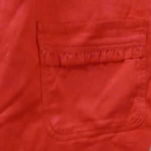 Stylish red dress with button-front design. Short sleeves and pocket details.