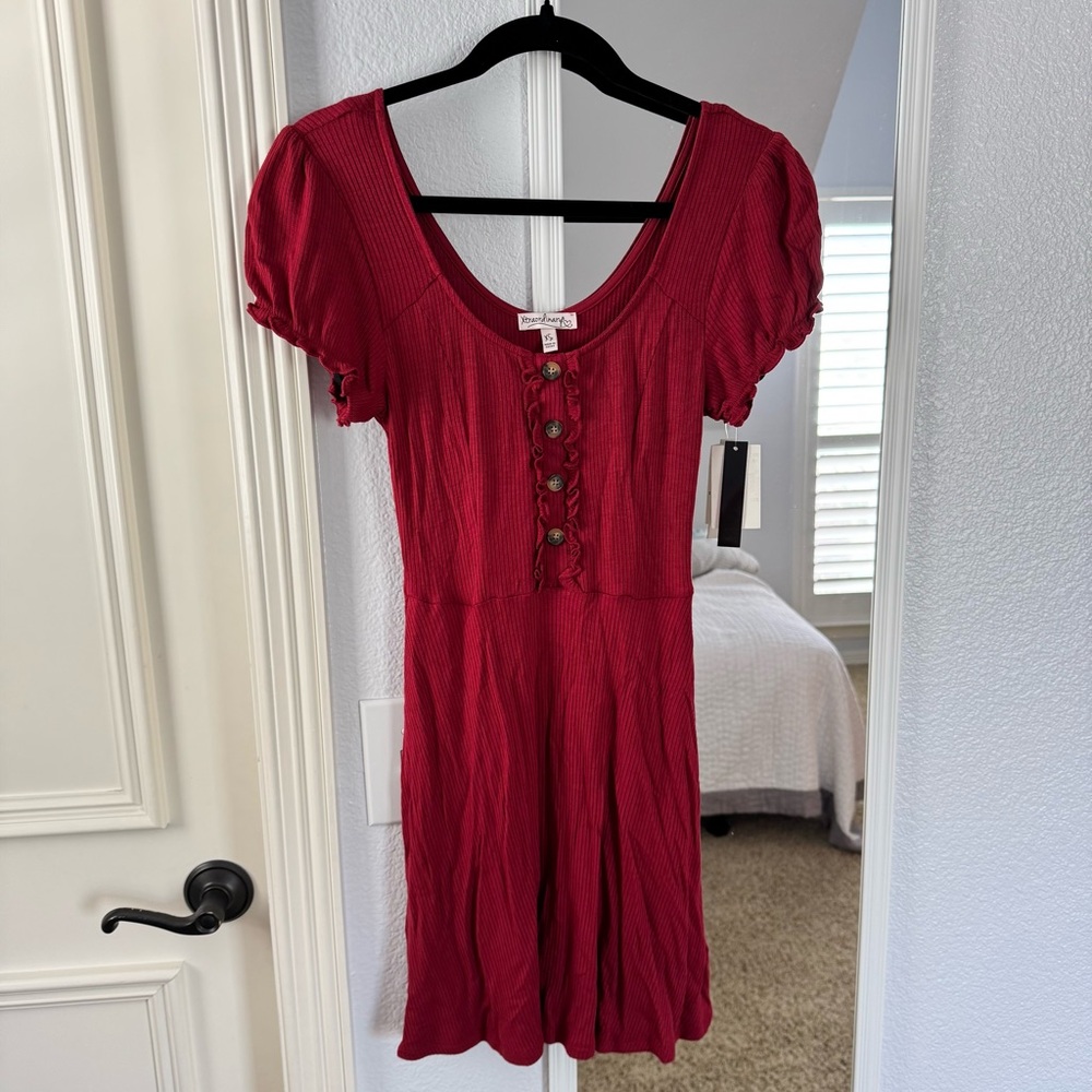 Chic and stylish red dress with a button-front design. Perfect for any occasion.