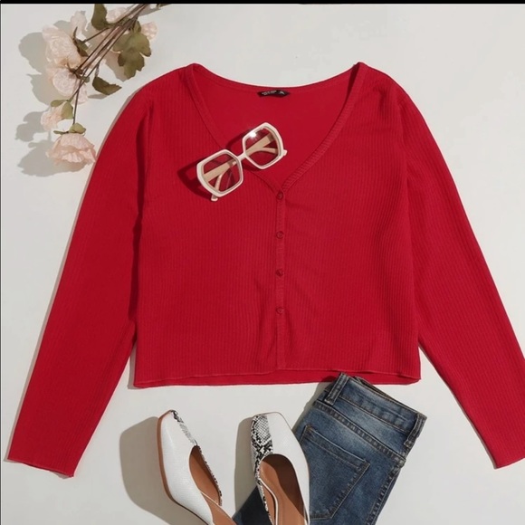 Red Button-Front Ribbed Top - NWOT