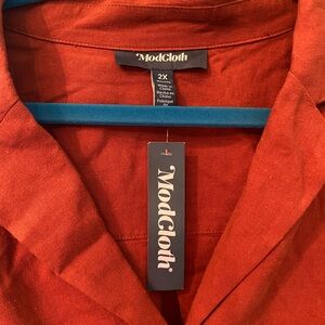 Stylish rust button-down with tie front. New with tags, just a little wrinkly