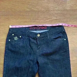Red By Marc Ecko Womens Rhino Dark Wash Denim Jeans Embroidered Size 32” Waist