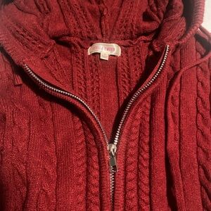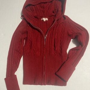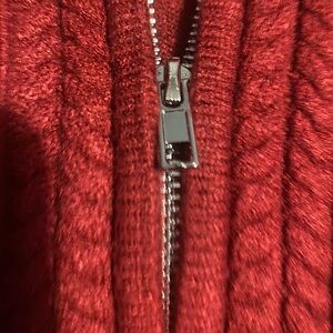 Stay cozy and stylish with this red cable knit sweater. Perfect for layering, this sweater adds a pop of color to any outfit.