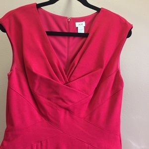 Red fully lined Cache dress. The back has a pleat not a slit at the bottom. From the neck to the bottom hem the dress is 39" and arm to hem is 29". Prefect for work or semi formal event!!!