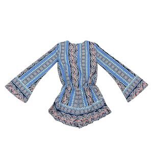 Red Camel Boho Chic Bell Sleeve Blue Romper Size XS