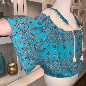 Red Camel Boho Top with Aztec Design and Tassles