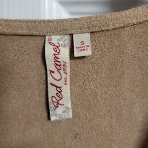 Red Camel Faux Suede Vest with Crochted Fringe- size S