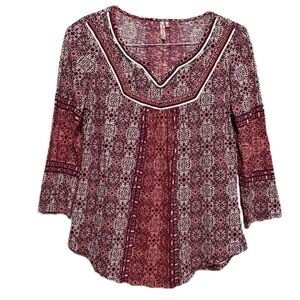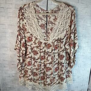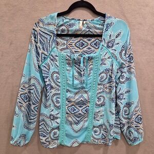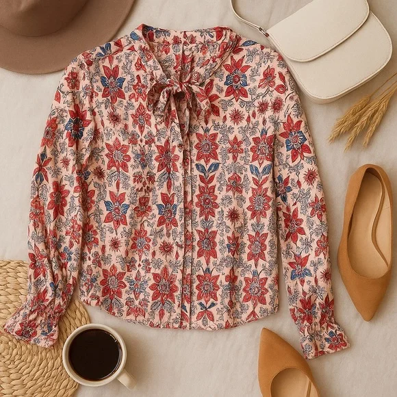 Red Camel Floral Tie-Neck Long Sleeve Blouse Size Medium