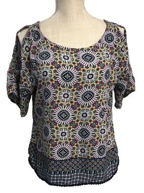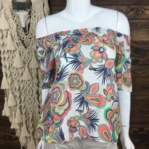 🌺 Color: Cream with magenta, blue, and crimson floral print