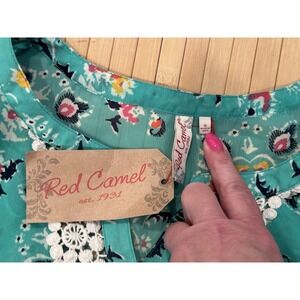 Red Camel / Green Sheer Puff Sleeve Crochet Peasant Blouse Top NWT / Size S