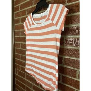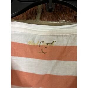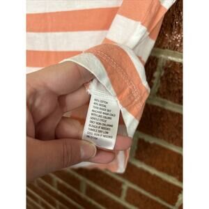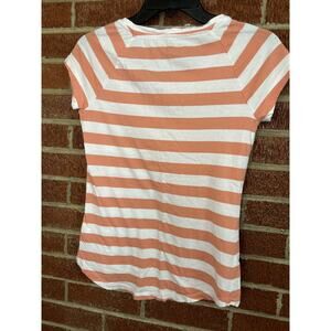 Red Camel Juniors Girls tshirt size XS. Shirt is a peach and white stripe, very classic 2000s look. Cotton and modal blend. Shoulder to hem measures 21.5” pit to pit 16.5”. Shirt is in VGUC, very tiny spot on a white stripe, refer to pics. Tag vinyl is peeling due to wash. No holes, pet and smoke free home.
