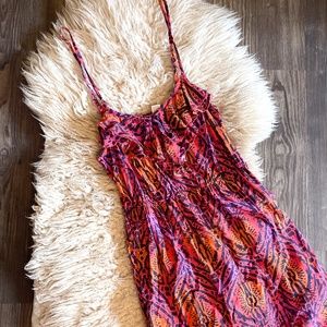 Super cute and casual Red Camel pink and orange patterned sundress; size medium; 100% rayon; knee-length; has adjustable straps