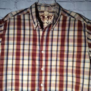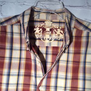 Red Camel Mens Shirt Size Lg Long Sleeve Button Up Brown Plaid Embroidered Logo