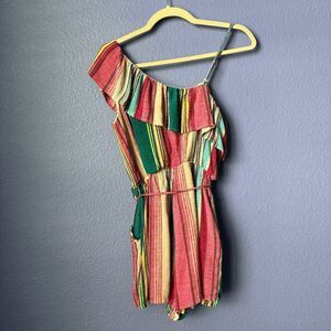 Red Camel One Shoulder Multi Color Romper Western Boho Summer Small Ruffle Tie