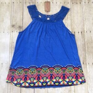 NWT vibrant colored tank with crocheted neckline.