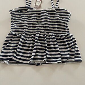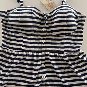 Red Camel Tank Top Large Spaghetti Straps Shirred Striped Navy White Baby Doll
