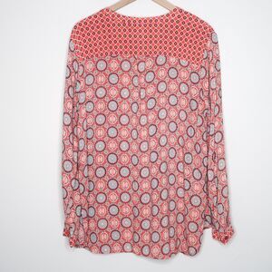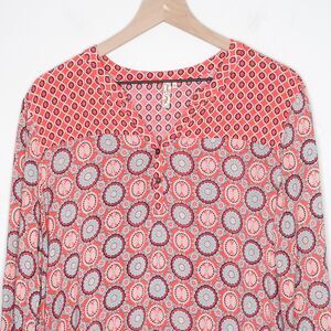 Red Camel Womens Henley‎ Blouse Size Large Pink Blue Boho Popover