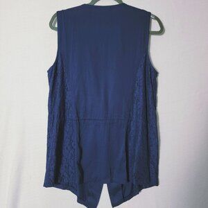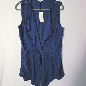Red Camel Womens Sleeveless Tunic Sz L Button & Tie Front V-neck Crochet Accent