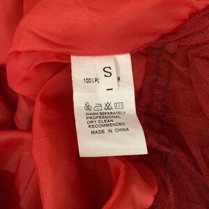 Red Camouflage Lightweight Bomber Jacket Long Ruffled Mesh Open Front SZ Small
