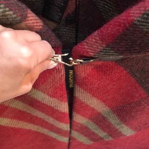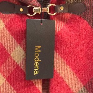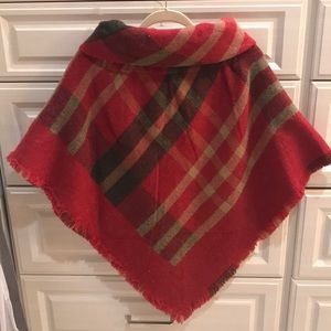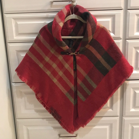 Brand New with tags. Looks great on! I have one for myself as well. Easy to wear. Just like a poncho with a clasp in front for closure.