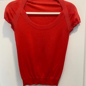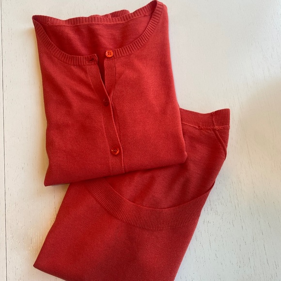 Small, scoop neck, light weight, red/orange cardigan/t-shirt set