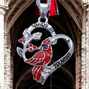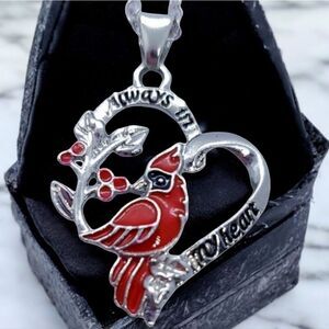 Red Cardinal Bird Silver Heart Necklace Jewelry