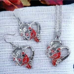 heart shaped earrings necklace three pieces 3 piece 3pc set bird watcher spiritualism spiritual funeral Gift Idea NWT Get Well Thinking of you gifts anthem Party Favors white elephant exchange kids youth teens girls toddler little girls dance class teacher gift juniors stocking stuffer tween funky unique cool alternative accessories Xmas surprise Featured Item, Newest Item, Best Selling student birthday Christmas gifts holiday memorial items death of loved one Religious Jewelry, Christian, Catholic, Biblical
