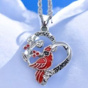 Red Cardinal Bird Silver Heart Necklace Jewelry
