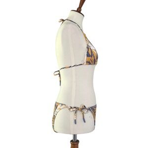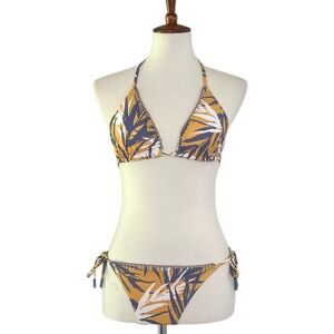 Red Carter Bamboo Leaf Print Crochet Lace Trim Bikini 2-Piece Swim Set In Amber