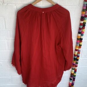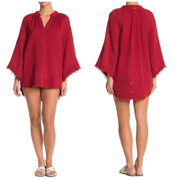 Red Carter Cotton Gauzy Popover Tunic Red Cover Up XS