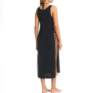 The airy open-weave side detailing of Red Carter's cotton jersey cover-up is finished with hip-to-hem cords for swingy after-swim style.