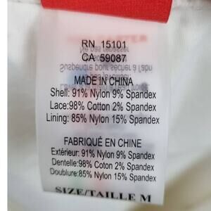 Red Carter "Neo Bohemia" one-piece swimsuit in microfiber with lace trim.