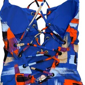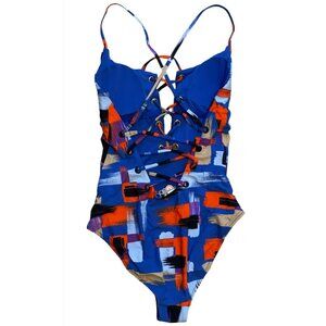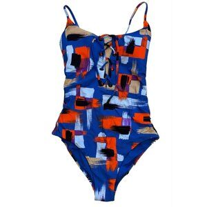 Red Carter Rio Abstract Print One Piece Lace Up Swimsuit women's size M …