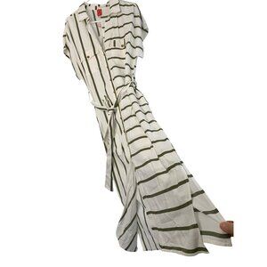 Red Carter Shay Safari Striped Button-Down Midi Shirt Dress Belt Pockets L 8742