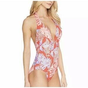Red Carter Swimsuit Women's size Small Red Tropical Floral V Neck One Piece New