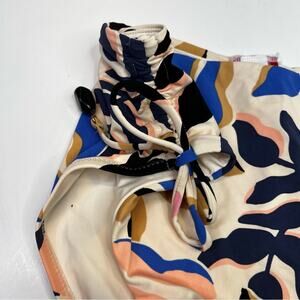Red Carter Tropical Leaf Print High Rise Bikini bottoms moonstone - M