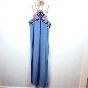 Red Carter Women’s XS Embroidered Chambray Maxi Dress