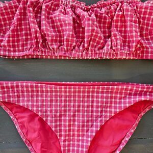 Red Carter Amour Gingham Shirred Bandeau Bikini Top & Bottom Set Size Large