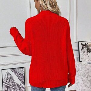 Red Casual Women's Choker Neck Drop Shoulder Sweater