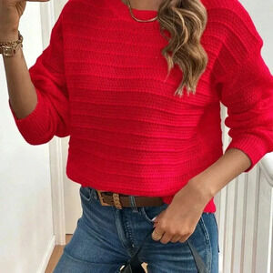 Red Casual Women's Elegant Bowknot Decor Drop Shoulder Sweater