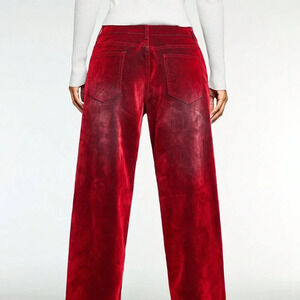 Red Casual Women's Fleeced Thick Loose High Waist Wide Leg Jeans