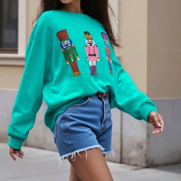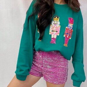 Red Casual Women's Loose Sequin Christmas Crewneck Sweater