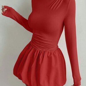 Red Casual Women's Round Neck Long Sleeve Mini Dress