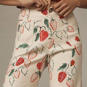 Red Casual Women's Wide Leg Capri Denim Jeans