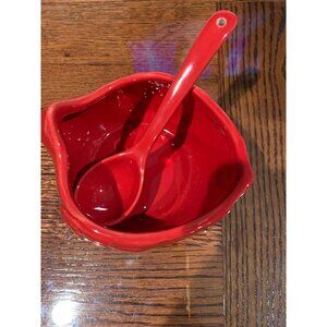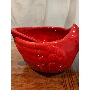 Red Ceramic Cardinal Serving Bowl With Matching Spoon By DEMDACO NWT