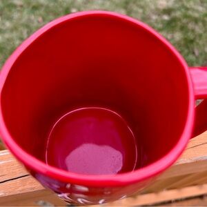 Enjoy your favorite beverage in this vibrant red ceramic mug. Perfect for adding a pop of color to your dining collection for Christmas!